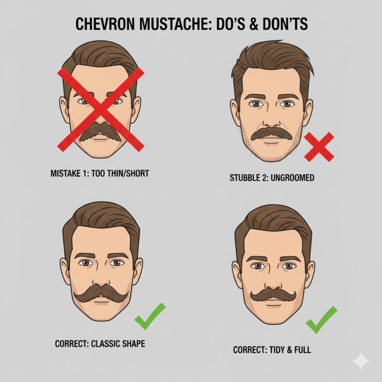 A Chevron mustache is a thick, full mustache that grows naturally over the entire upper lip, forming a bold, triangular shape. It’s one of the most iconic mustache styles—popularized by Tom Selleck—and suits men who want a masculine, low-maintenance, statement look.