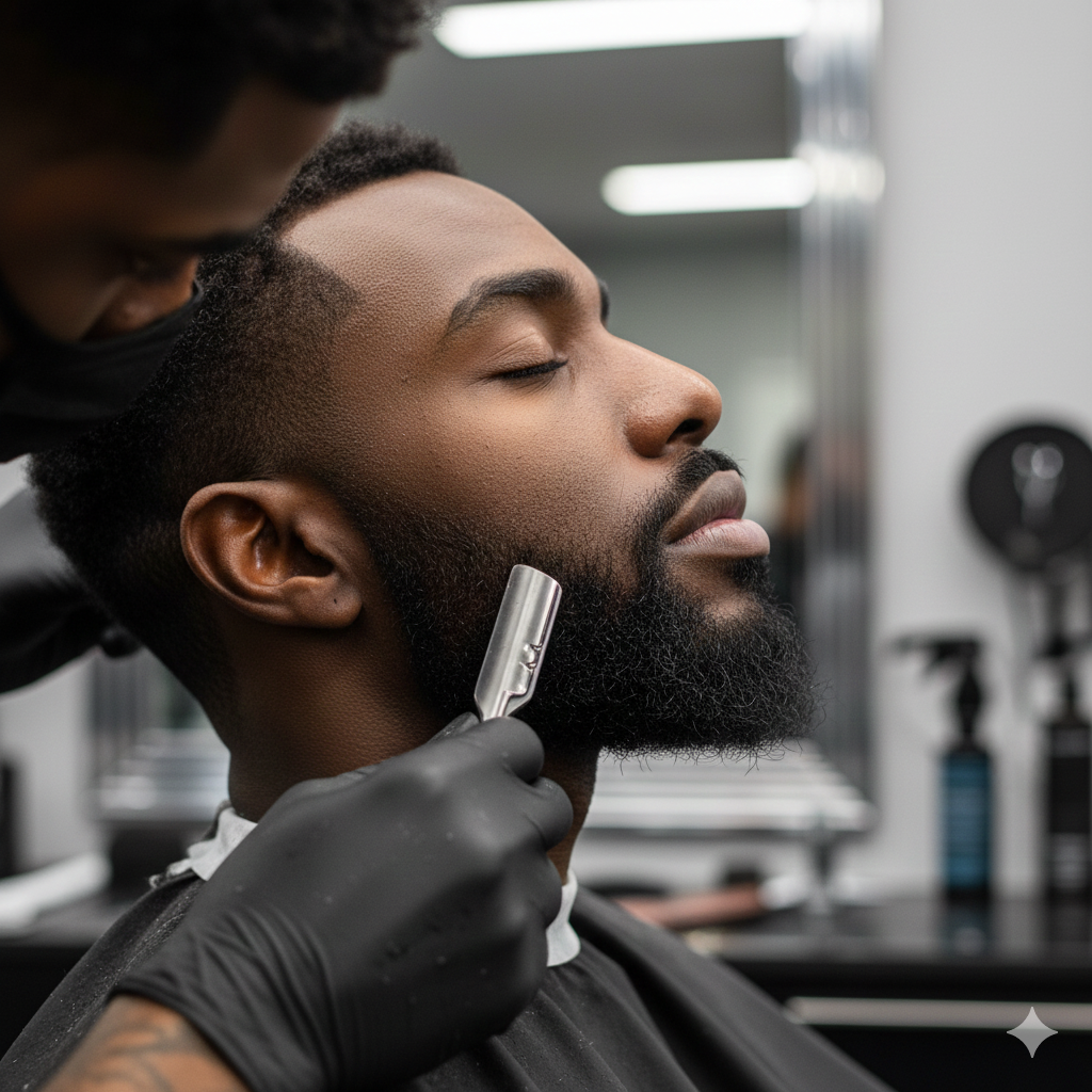 Black men typically grow dense, tightly coiled beards. These textures allow for extremely clean, sharp, structured shapes.