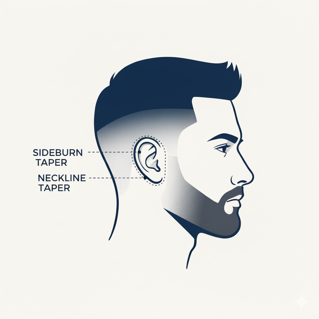 The taper fade is softer than a full fade. It focuses on tapering the sideburns and neckline for a polished yet subtle effect — perfect for professional or conservative settings.